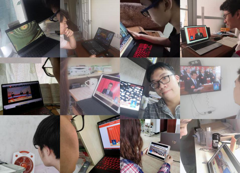 5月22日上午九点,全国人大正式开幕。由于受到疫情的影响,同学们无法一同在教室观看会议直播所以在形势与政策课上,辅导员黄永明老师特意留出一部分时间,同学们自行观看直播。会议开始,同学们跟随现场的主席团、代表们一同唱国歌,并对在疫情中逝去的烈士与同胞表示哀悼。会议结束后,同学们认真学习李克强总理的政府工作报告,有体育课的同学也及时观看回放,实现了全员观看的目标。